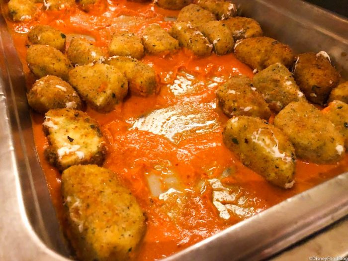 Another option is the Trio of Arancini. These fried rice balls were filled with braised beef, truffled mushroom, and fresh mozzarella. This was another one of our FAVORITES. They were warm and super yummy. They were also quick to eat, which is nice when you’ve spent cash money on a ticket for the MNSSHP party itself…and you’re trying to get your money’s worth from the hide-a-way event!