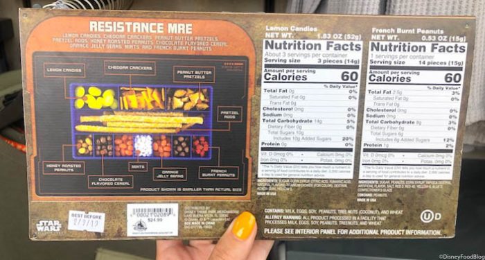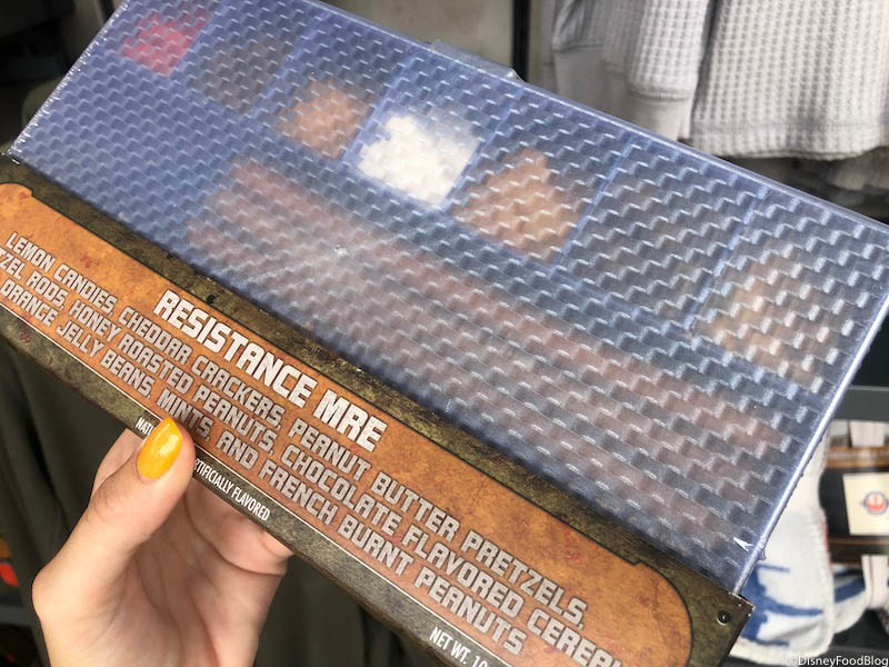 We found this box of prepackaged goodies at Resistance Supply in Disney World’s Galaxy’s Edge for $24.99.