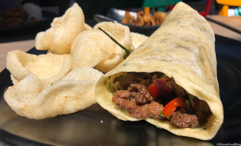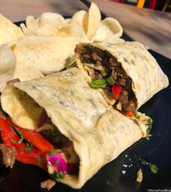 The Beef Bulgogi Wrap ($13.99) is made with thin marinated beef, peppers, cabbage, and prawn crackers.