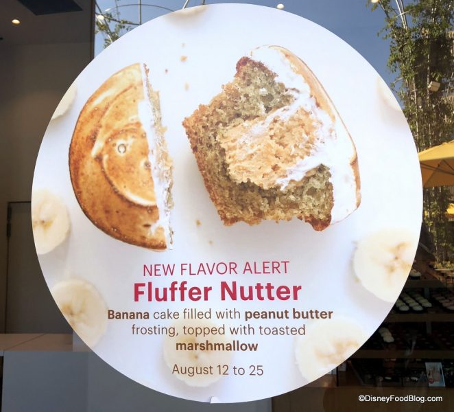 Downtown Disney’s Sprinkles location was advertising its Fluffer Nutter Cupcake, which is available through August 25th. This cupcake consists of banana cake, peanut butter filling, and toasted marshmallow. If you love peanut butter, don’t miss out on this one!