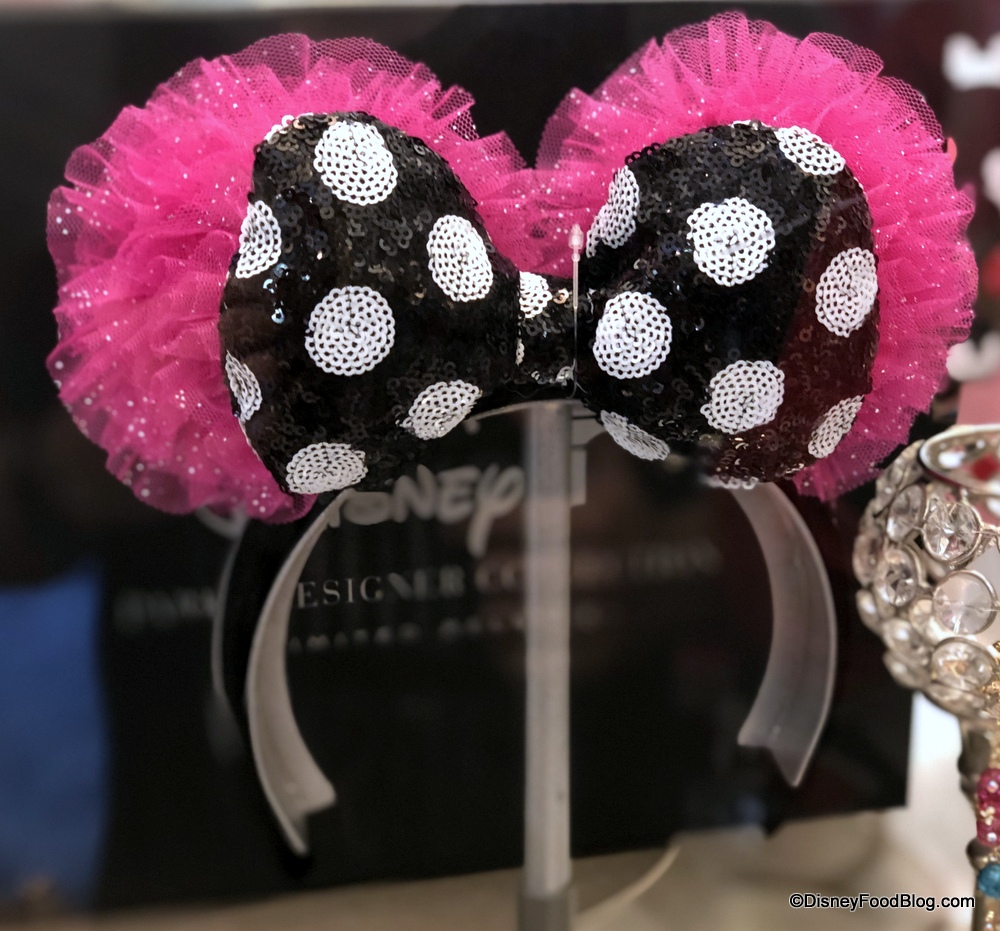 Sparkly pink tulle makes up the ears while a sequined black and white bow serves as the finishing touch.