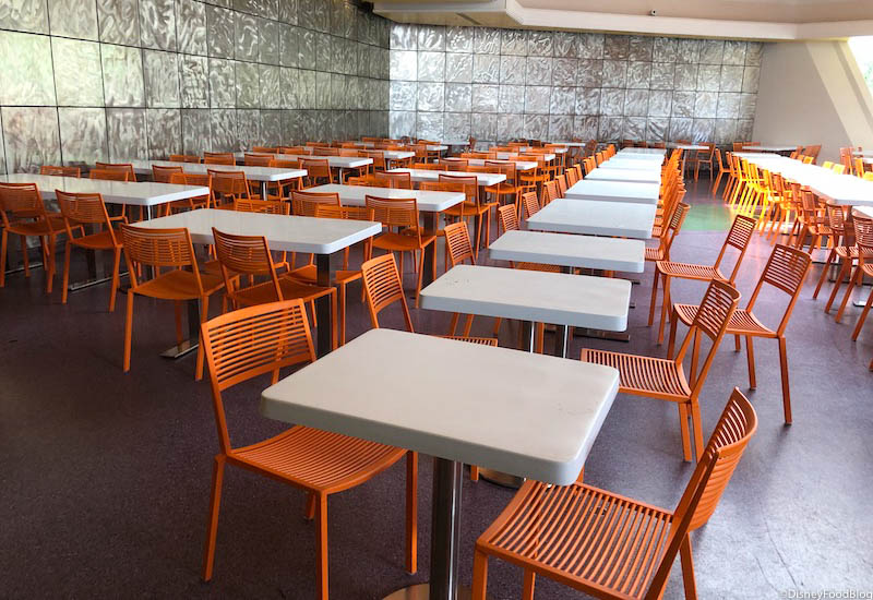 A few months ago we shared that Tomorrowland Terrace had a new coat of paint. And today we noticed that the location had received a bit of an overhaul as all-new chairs have appeared to match the new paint job. Yup!! They’re also bright orange.