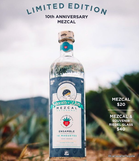 And now, to celebrate their tenth anniversary, La Cave del Tequila has announced via Instagram that guests can order a shot of Limited Edition Gracias a Dios Mezcal ($20). How limited is limited? They’ve only got 300 bottles total, so you’ll have to act fast to toss back your shot!