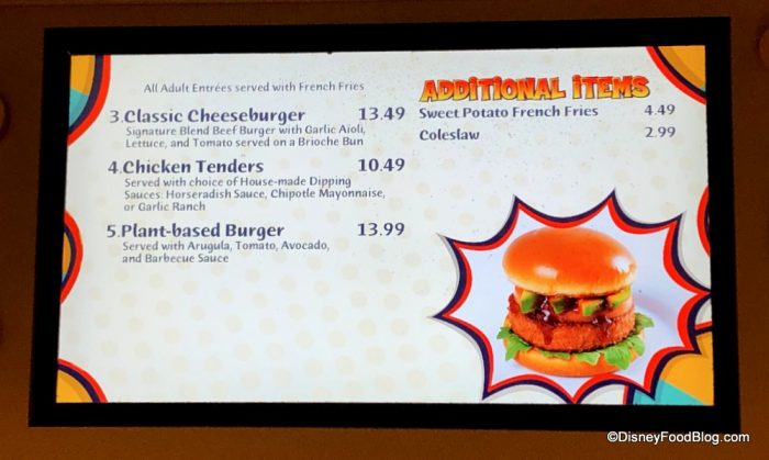 The Plant-based Burger went up in price from $12.49 to $13.99, while the Chicken Tenders went DOWN in price from $10.99 to $10.49. Also, what was previously called the Cheddar Burger is now the Classic Cheeseburger.