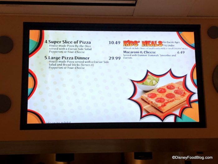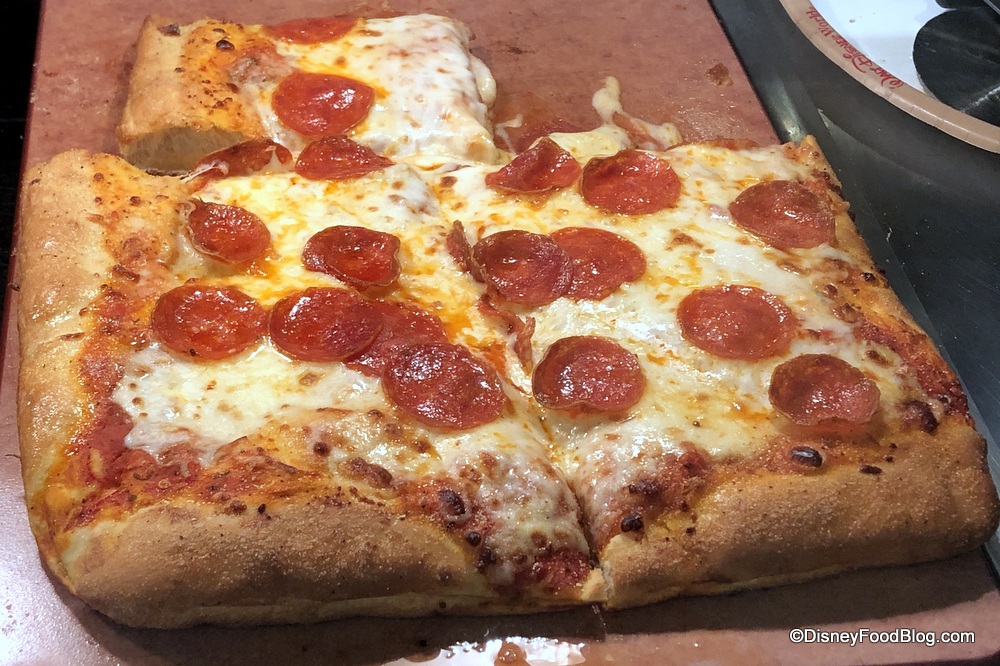 Pop Century used to have the best pizza. We made a special trip just to get their pizza a few weeks ago. We were disappointed that they no longer had the deluxe pizza, but the pepperoni pizza we ate was still delicious. It was an affordable option for families. The new square pizza looks good, but this will no longer be an option for us because some of my kids don’t like square pizza. Further, it is too costly now.