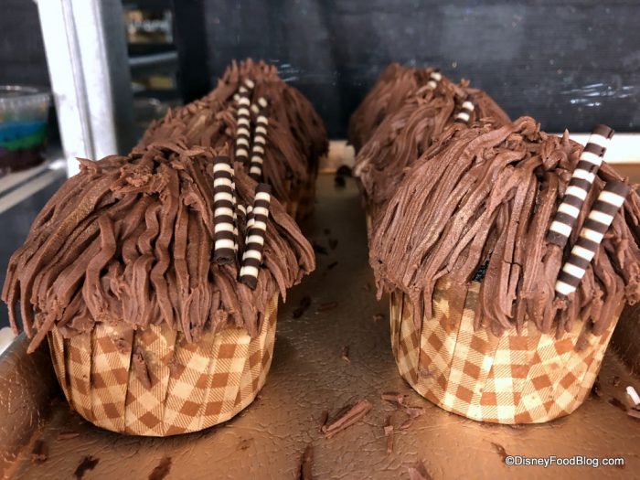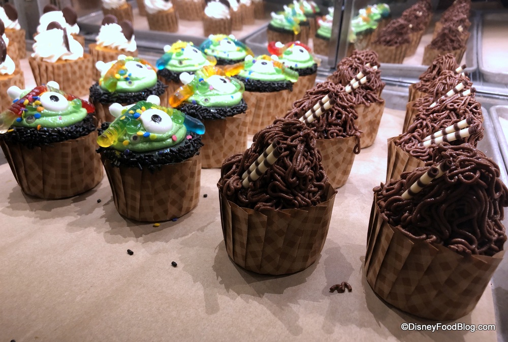 At Everything POP Food Court, we found a pair of new cupcakes — the Bubble, Apple, Toil, and Trouble Cupcake and the Chewbacca Chocolate Hazelnut Cupcake. You can grab each of these treats for $5.49 or a Disney Dining Plan snack credit.