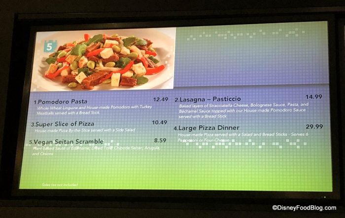 Pomodoro Pasta is now made with turkey meatballs only. Guests used to have a choice of chicken, shrimp, or turkey meatballs. The Lasagna-Pasticcio description changed, but it didn’t seem too different to us. What was previously called “creamy white sauce” is now labeled as “Bechamel sauce.”