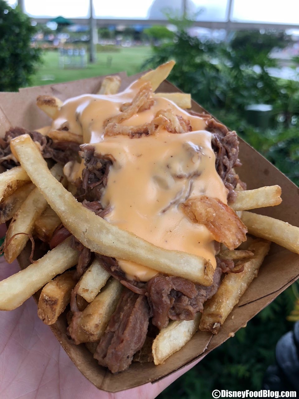 At Epcot’s Refreshment Port, you can grab Beef Brisket Poutine for $9.50. This appeared as a menu item for 2018’s Food and Wine Festival and 2019’s Flower and Garden Festival, but it is listed as a regular menu item at the moment.