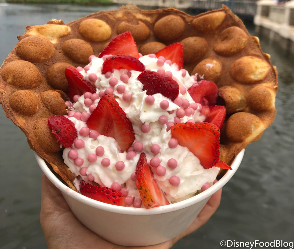 You’ll also find the totally epic Bubble Waffles in Disney Springs! AristoCrepes not only serves up sweet and savory crepes, but they offer Strawberry and Caramel Bubble Waffles as well.