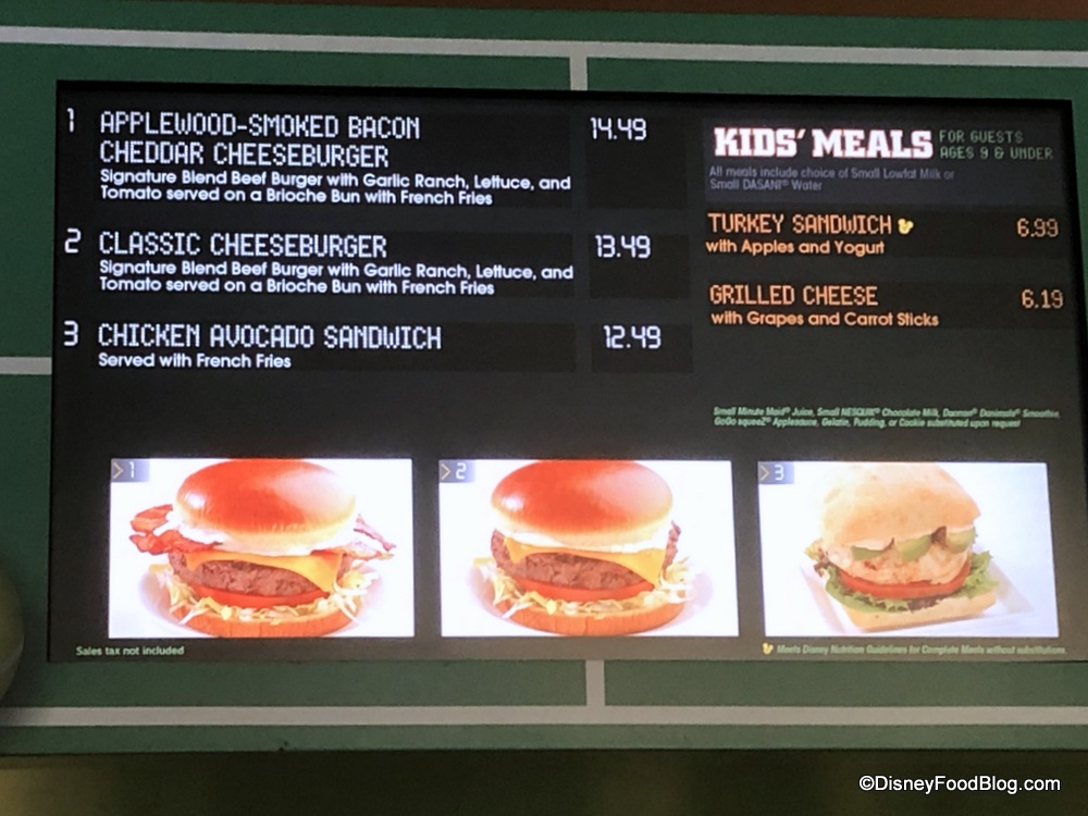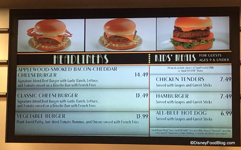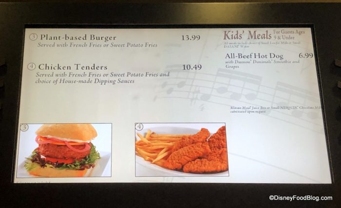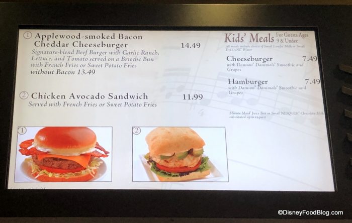 The Plant-Based Protein Burger has also increased in price, and is now $13.99 instead of $13.49! All burgers and sandwiches used to come with coleslaw and fries, but now they are just served with fries. The Kids’ Meal Cheeseburger has also been updated to come with grapes and carrot sticks for $7.49.