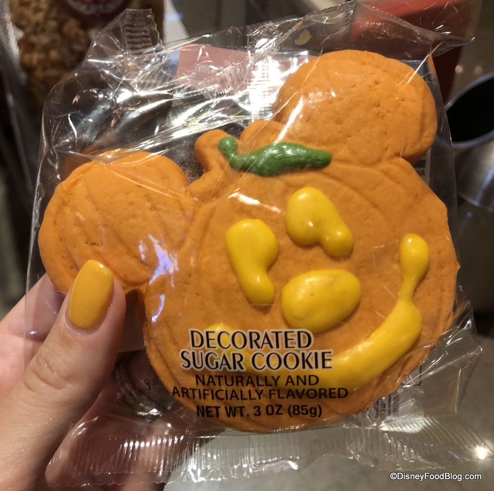 Let’s kick things off in Big Top Treats, where we found a prepackaged Pumpkin Mickey Sugar Cookie for $3.99.