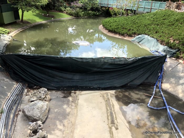 During our most recent visit, the moat was still drained and they looked like they were getting ready to continue working on landscaping. We’ll let you know when the moat is full again!