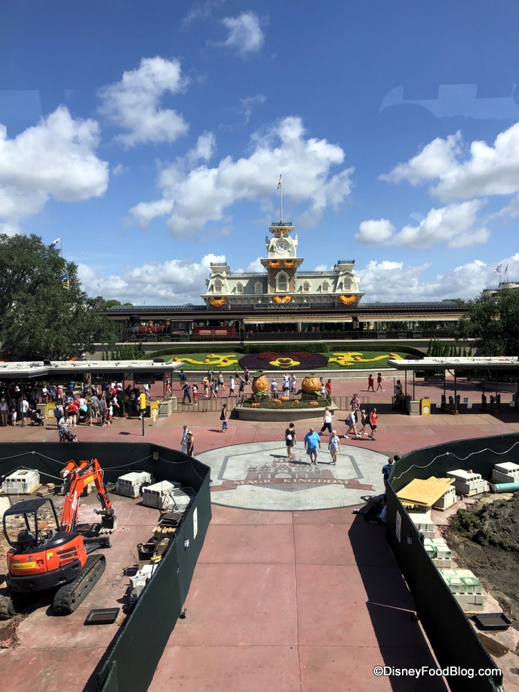 During our most recent visit, construction was still underway around Magic Kingdom’s entrance. We’re pretty sure this is for maintenance, but we’ll let you know if we learn more!