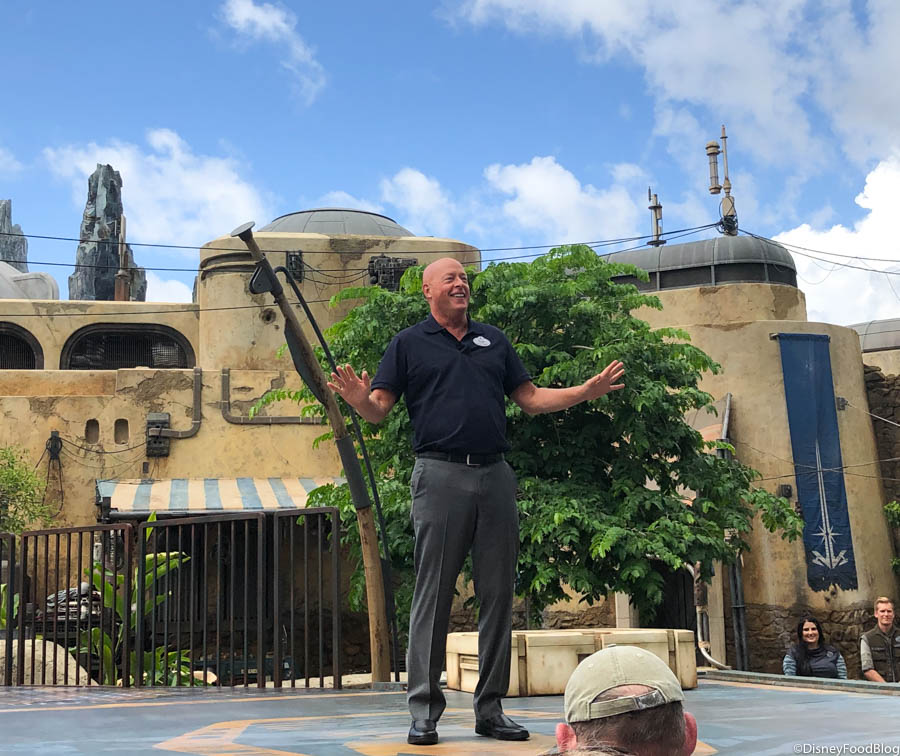 This ceremony, which took place at 10:00 AM this morning, was led by Bob Chapek and a few Star Wars characters. Bob Chapek shared a few words about the creation of Galaxy’s Edge and the immense amount of storytelling involved in the process. He also thanked Disney Imagineers for their hard work.