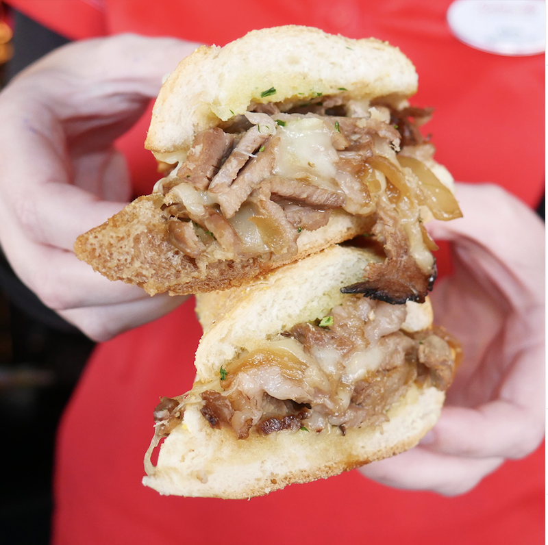 And now, they are serving a French Dip, which is made with shaved prime rib, caramelized onions, and melted provolone.