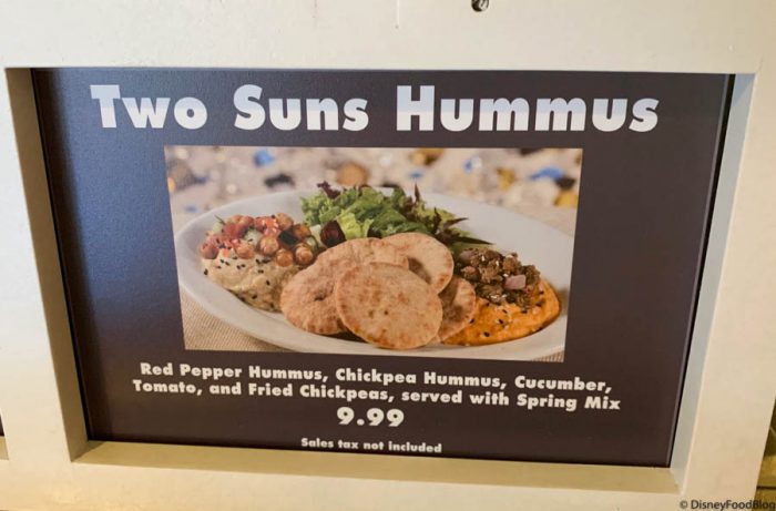 So, let’s dig into the Two Suns Hummus from Backlot Express in Hollywood Studios!