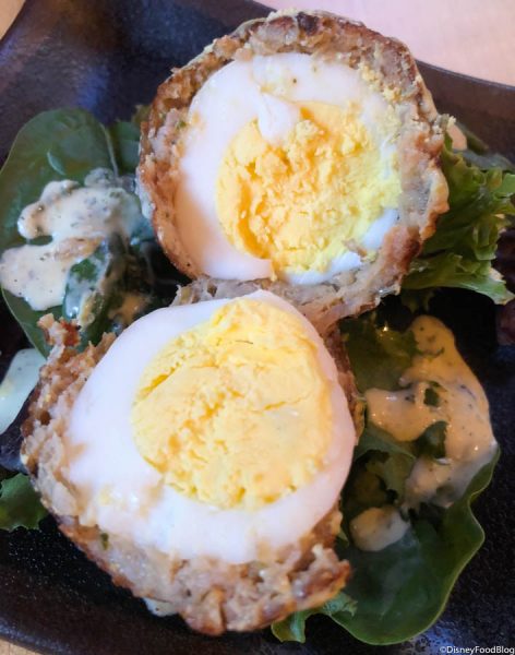 Sadly, since (as far as we know) they only offered this yesterday, you may not be able to go to Restaurantosaurus for a Scotch Egg. But, do not fret! Because Rose and Crown in Epcot’s UK Pavilion has some of the greatest Scotch Eggs…EVER.