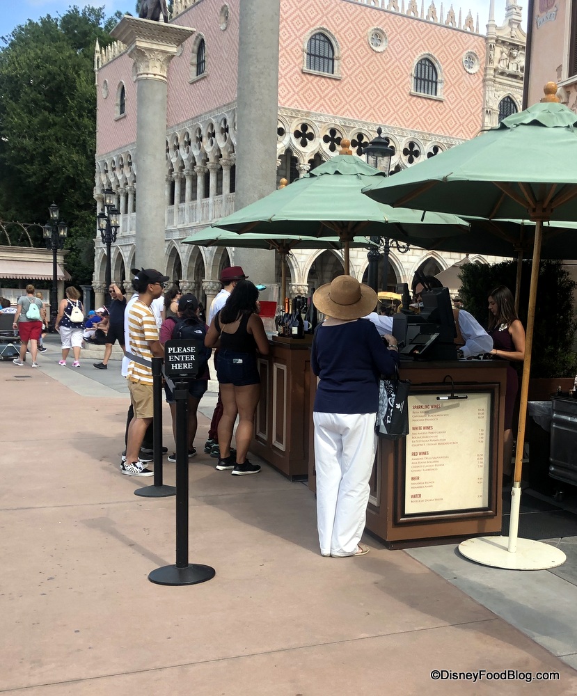 In the Italy Pavilion, we noticed that the outdoor wine bar has returned, serving a variety of wines and beers.