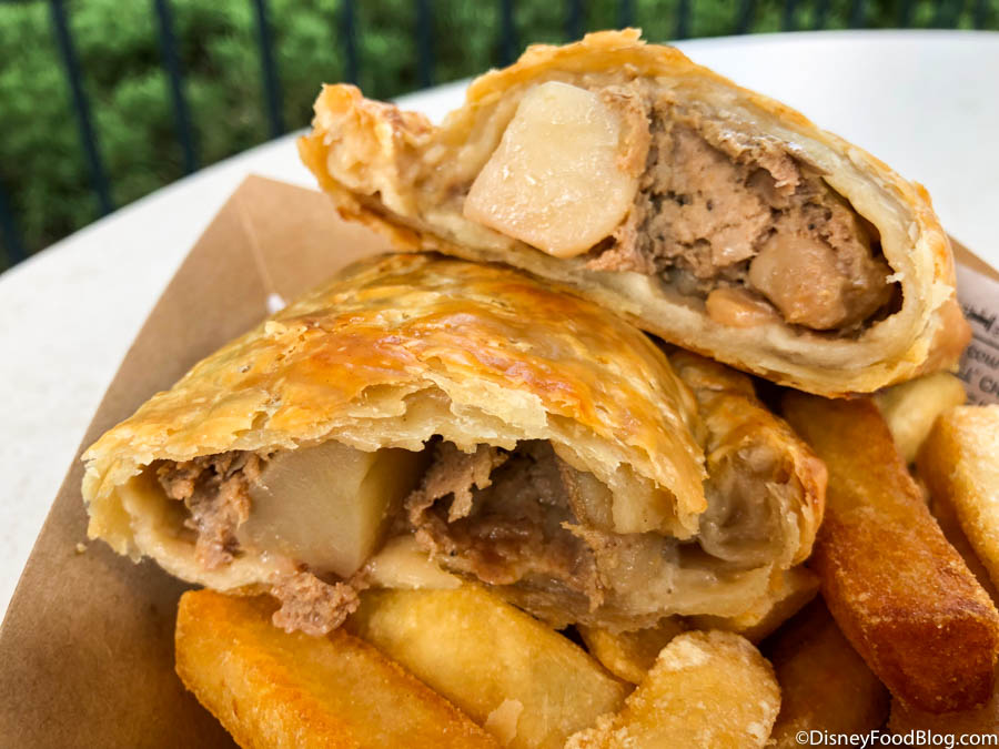 In the UK Pavilion, we spotted a new Cornish Pasty at Yorkshire County Fish Shop. It comes with chips for $11.49.
