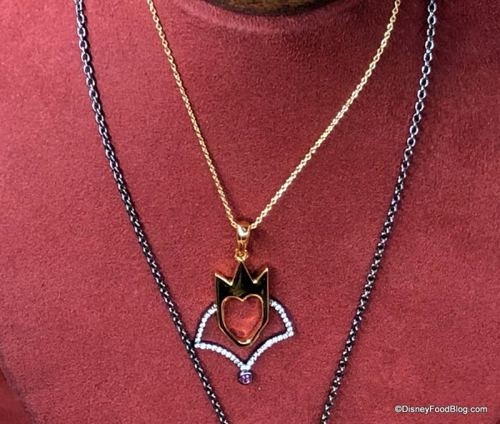 We found several new-to-us merchandise items during our latest visit to Magic Kingdom, including two Rebecca Hook necklaces in Uptown Jewelers. We spotted an Evil Queen necklace ($125)…