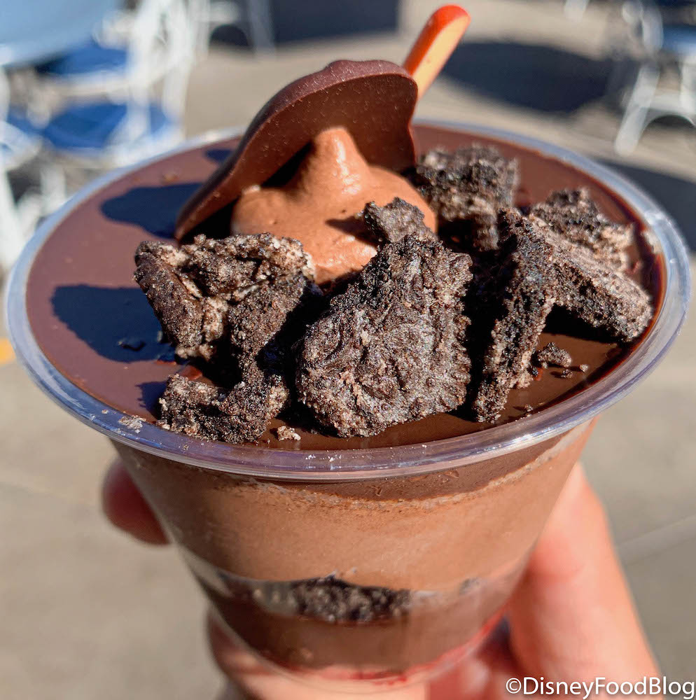 …the Darth By Chocolate Parfait! This dessert is BACK and ready to lure guests over to the dark side with the red velvet cake, chocolate cake, dark chocolate mousse, chocolate ganache, and cookies that make up the layered parfait. A chocolate Darth Vader Mask and red lightsaber add the final touch to the treat (the Sith Lord has never looked better!).