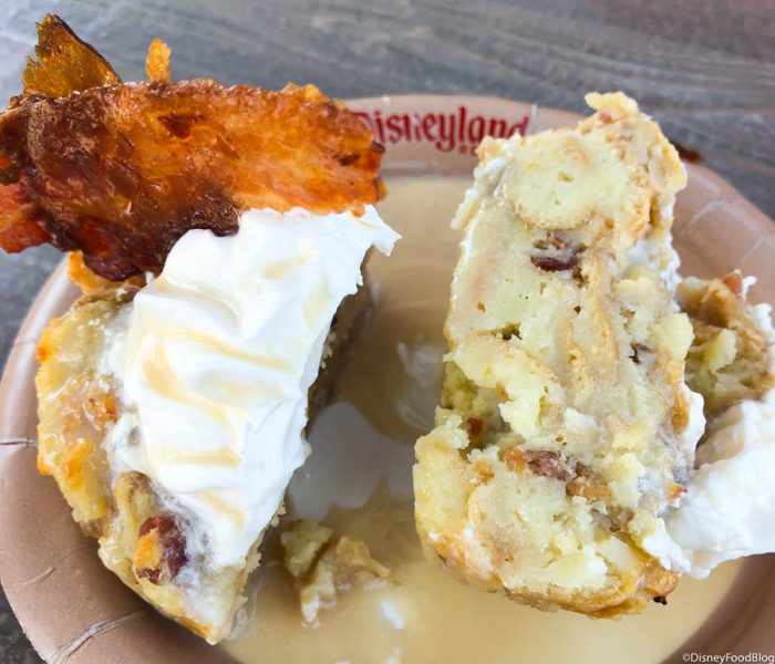 We’ve been live at the park trying out the Minnie Witch Shake, the Haul-O-Ween Churro, and the Blood Orange Slush! And now it’s time to try what quite possibly might be the BEST seasonal bread pudding EVER!!