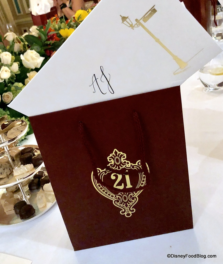 After the meal, we were escorted to the Balcony to watch Fantasmic, and I have to say, this is the way to see the show! But when we came back into the Dining Room, we each had a gift bag waiting at our seats.