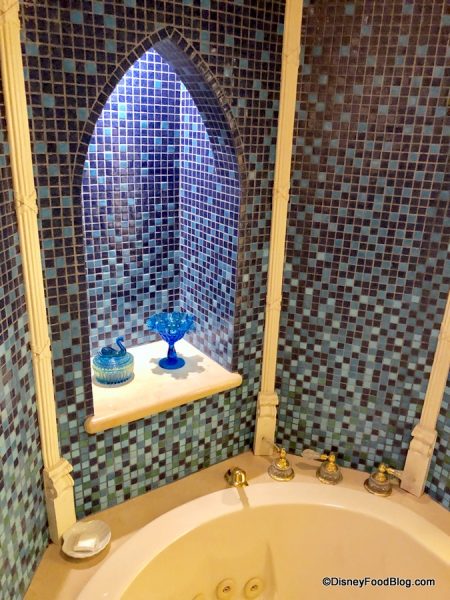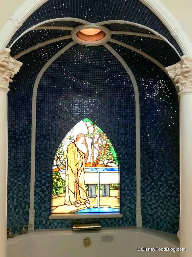 And when you press the Good Night Kiss button in the Master Bathroom, you get lighting effects in the dome over the tub that include a glittering Hidden Mickey.