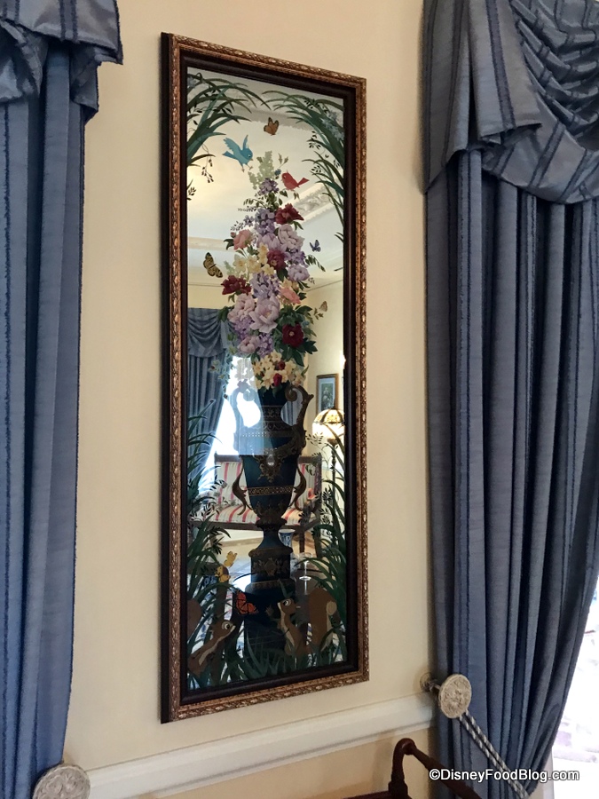 This painted mirror serves not just to reflect light and provide whimsey in the space, it’s also got the Disney touch if you look a little closer.