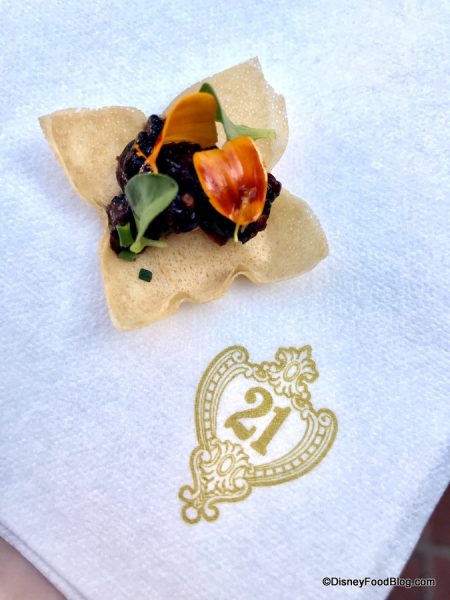 21 Royal is a meal like no other, and it was a bucket list item for us that DiningInDisney really made happen. It was something I wanted to try and share with you, and we paid for this meal with no sponsorship from Disney of any kind. So that said, is it worth the price of $1250 per person? Well, it’s a five-hour-long experience in an invaluably exclusive location with a view of Fantasmic, Park Hopper tickets included for every diner, endless drinks, and rare and special food. It was absolutely a spectacular experience for me, in part because the people I dined with were wonderful. So do keep that variable in mind if you are considering gathering some folks for a meal here.