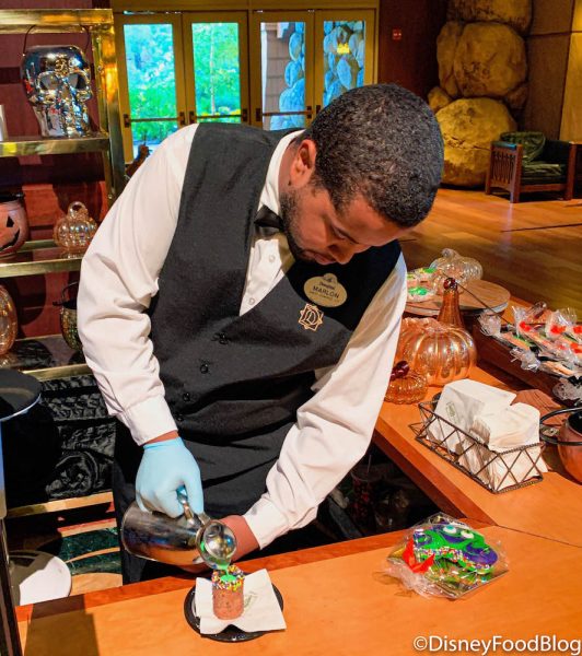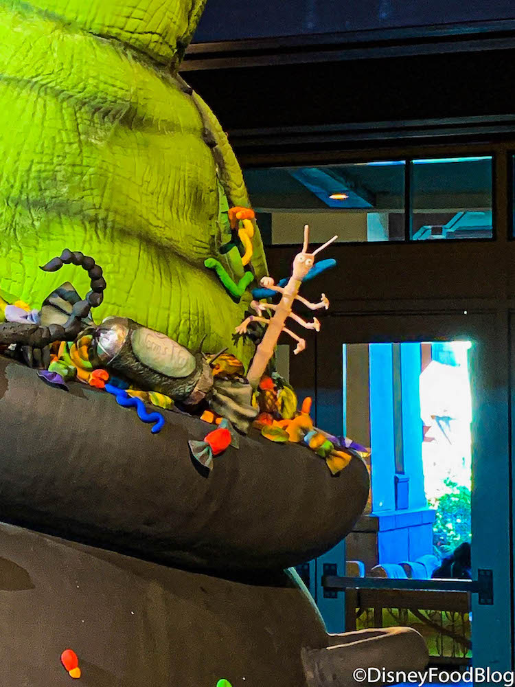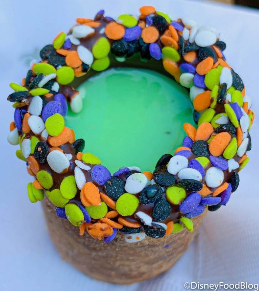 We can confidently say that this is probably the most full we’ve ever been from a “shot,” since you not only get a drink…you get a delicious treat with it, too! The chocolate rim, sprinkles, and gummy worm were a fun final touch to the tasty dessert — they might even give Oogie Boogie’s bugs a run for their money. (Check out this hidden Disney friend in the display!)