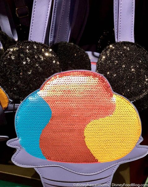 Thanks to the Disney Hawai’i Moms for tagging us on instagram with this! We were able to see that the purple bag features the rainbow colors of the classic Mickey shave ice served at Aulani, paired with black Mickey ears…