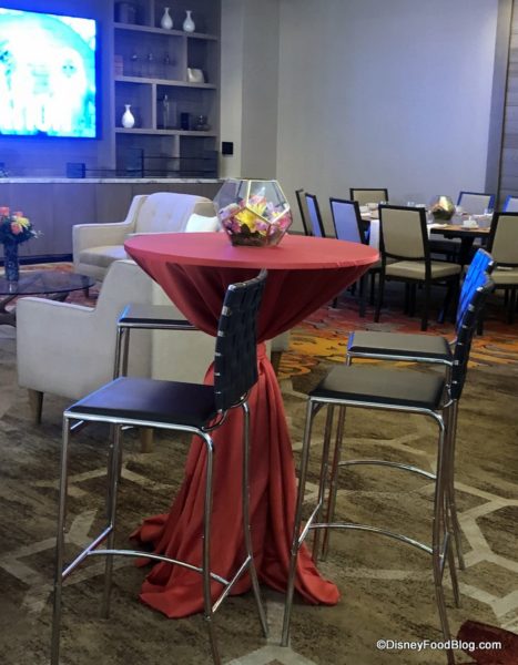 Groups that reserve this space will work with cast members to determine their individual needs, but a set-up might include simple table settings, bottled water, and candy (in Mickey-shaped bowls).
