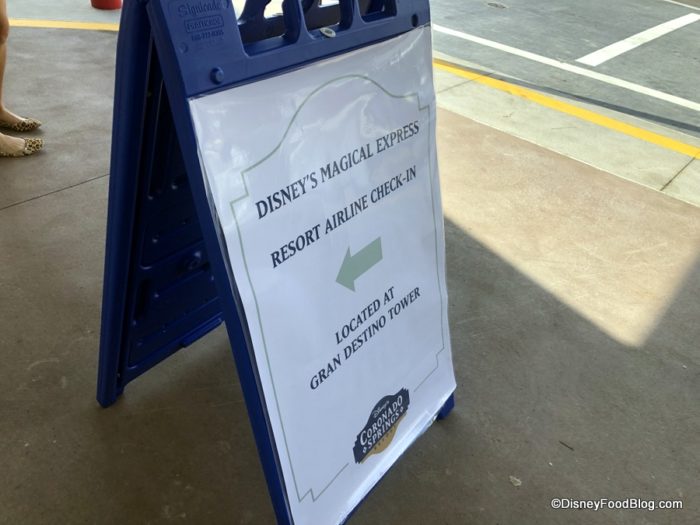 Back under the port cochere, guests can find signs directing them to Resort Airline Check-In.