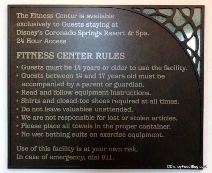 The Fitness Center is accessible 24 hours a day for guests staying at Coronado Springs Resort — even if they’re not staying in the Tower itself.