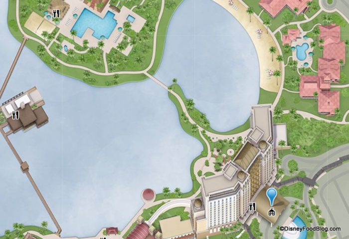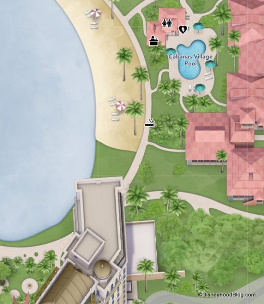 And for a quieter pool experience (that’s potentially even closer than Cibola), the Cabanas Village Pool is just to the right of the Tower when you exit toward Lago Dorado.