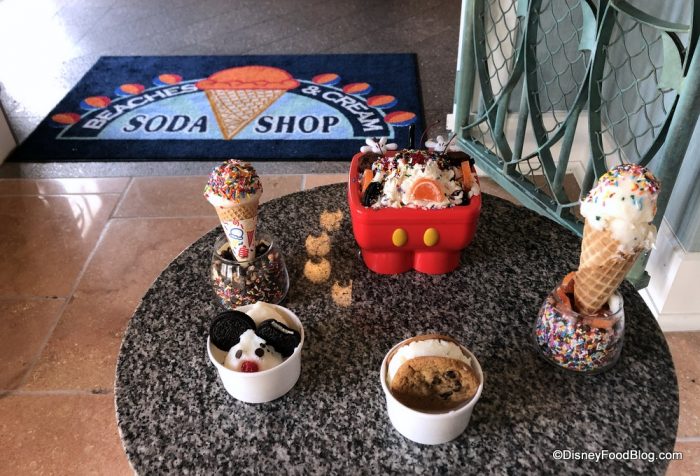 In case you missed it, the cult favorite Beaches & Cream Soda Shop has temporarily closed for a lengthy refurbishment. Thankfully, there is a temporary satellite location in Ariel’s, a place typically used for wedding receptions and the like. During our most recent visit, we spotted Beaches & Cream’s logo rug in front of the temporary location, so you should be able to find it with more ease!