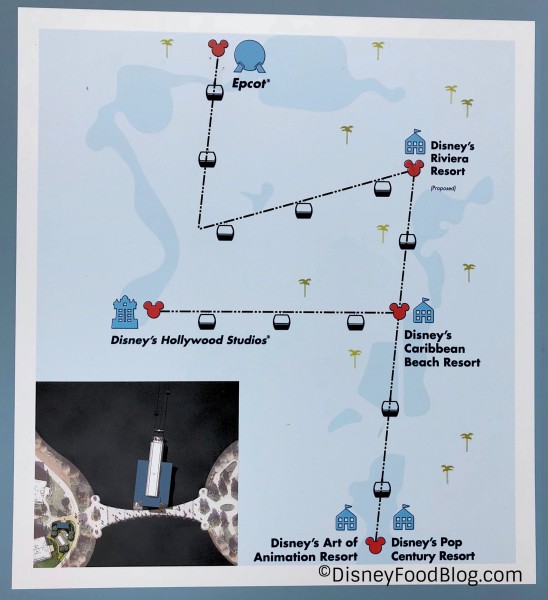 There are five Skyliner stations. These are located at Hollywood Studios, Epcot’s International Gateway, Disney’s Caribbean Beach Resort, Disney’s Art of Animation/Pop Century Resorts, and Disney’s upcoming Riviera Resort.