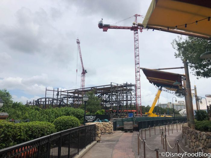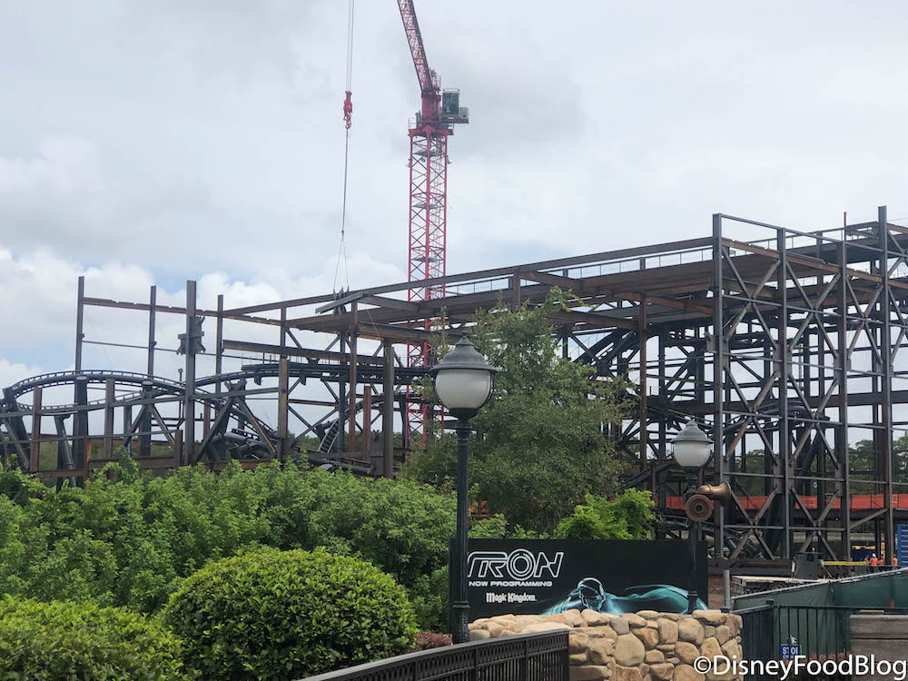 Construction is still underway on the 2021 slated ride, and the large crane building the track was visible from multiple locations around Magic Kingdom.