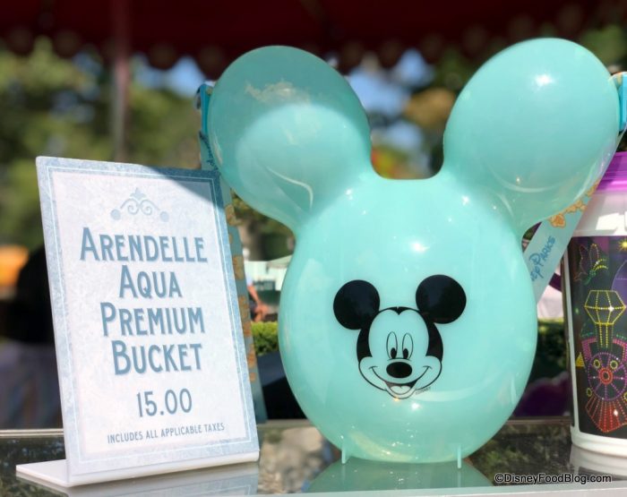 On Main Street, U.S.A., the Popcorn Cart has popped up with an Arendelle Aqua Popcorn Bucket!