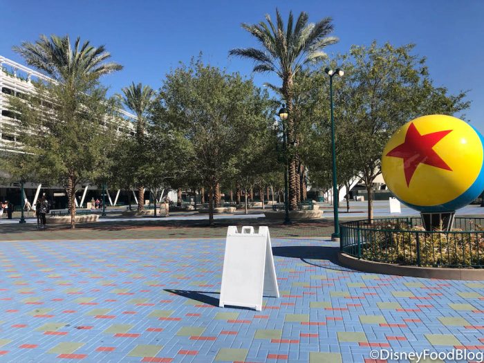 The landscaping outside the Pixar Pals Parking Structure has also been completed as well! We’re lovin’ the look of all those trees and the Pixar Ball-colored tile!!