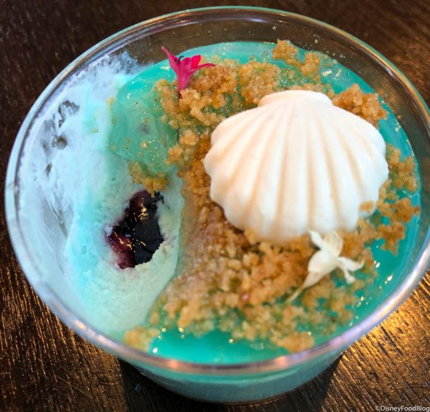 The Arendelle Aqua Cake from Contempo Cafe might just be the prettiest dessert we’ve seen in a while in Disney World! It’s super chic blueberry buttercream, edible gold paint, and sugary decoration resemble ice crystals which reminds us of the geode trend that’s been happening in cake design lately.