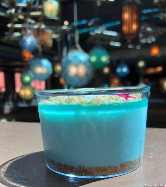 One of these newly introduced treats is the Arendelle Aqua Lemon Blueberry Cheesecake. This is a lemon blueberry cheesecake filled with a blueberry compote. It’s topped with a graham cracker crust, a chocolate shell, and micro orchids.