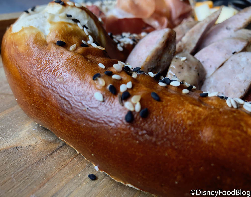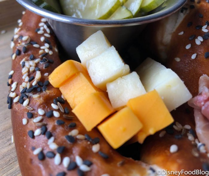 All around Disney Springs, the WonderFall flavors are in full swing! We’ve already sampled the Fall treats at YeSake, the Oktoberfest Burger at D-Luxe Burger, and now, this LOADED pretzel seriously has our mouths watering just by looking at it.