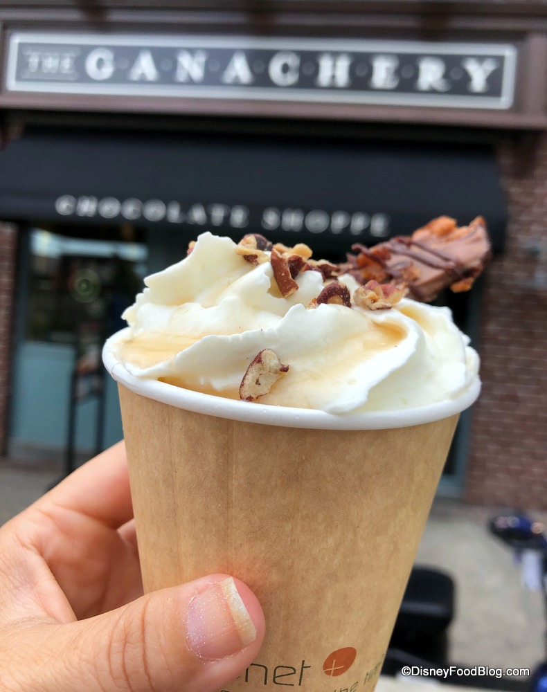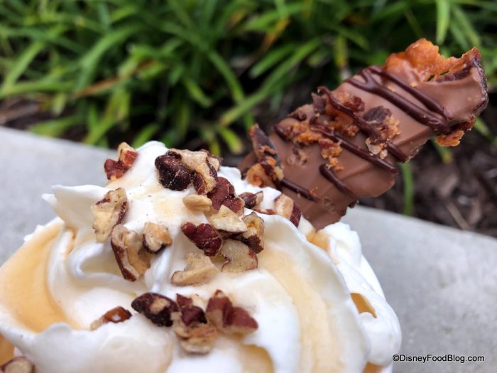 While they didn’t have a non-alcoholic version of the hot shipping chocolate during our visit, a Cast Member said they’d have one available soon. But for now, head on over to The Ganachery to try this boozy, bacon-y, chocolatey beverage for $13. We don’t think you’ll be sorry. 😉