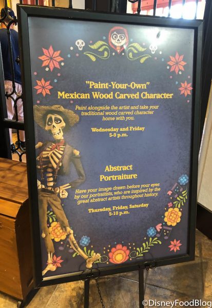 Instead of having your portrait painted, maybe you want to use your own artistic skills! On Wednesdays and Fridays from 5 PM- 9 PM, you can “Paint-Your-Own” Mexican Wood Carved Character. Will you be painting Miguel or Héctor from Coco??