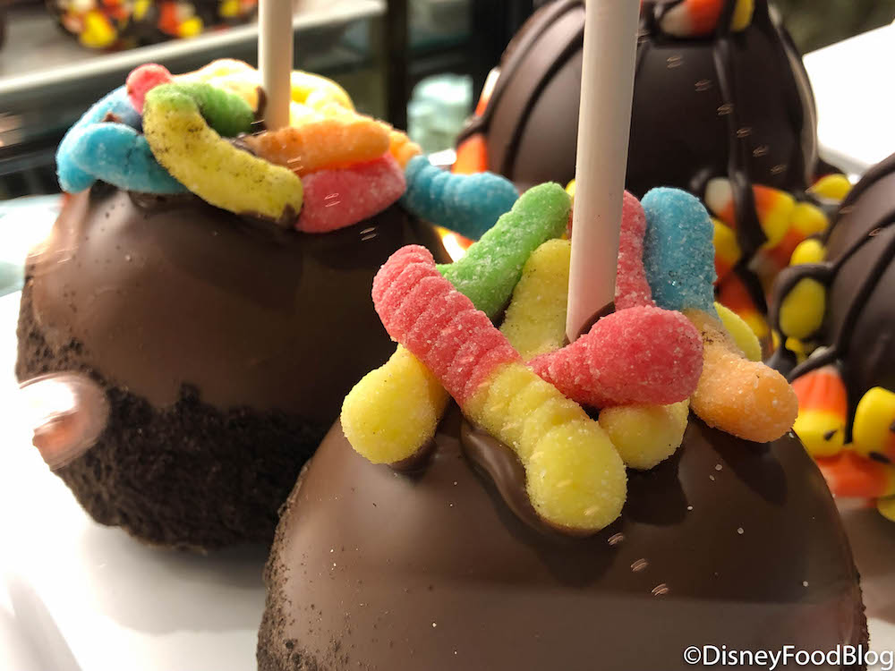 We can’t visit a Disney park without taking a look at the treats, now can we?? At Big Top Treats, a new Gummy Worm Caramel Apple has arrived to go along with the Candy Corn Caramel Apple for $12.99!