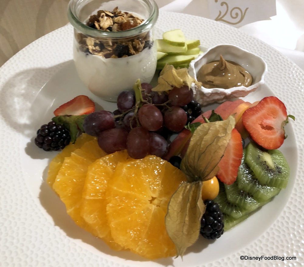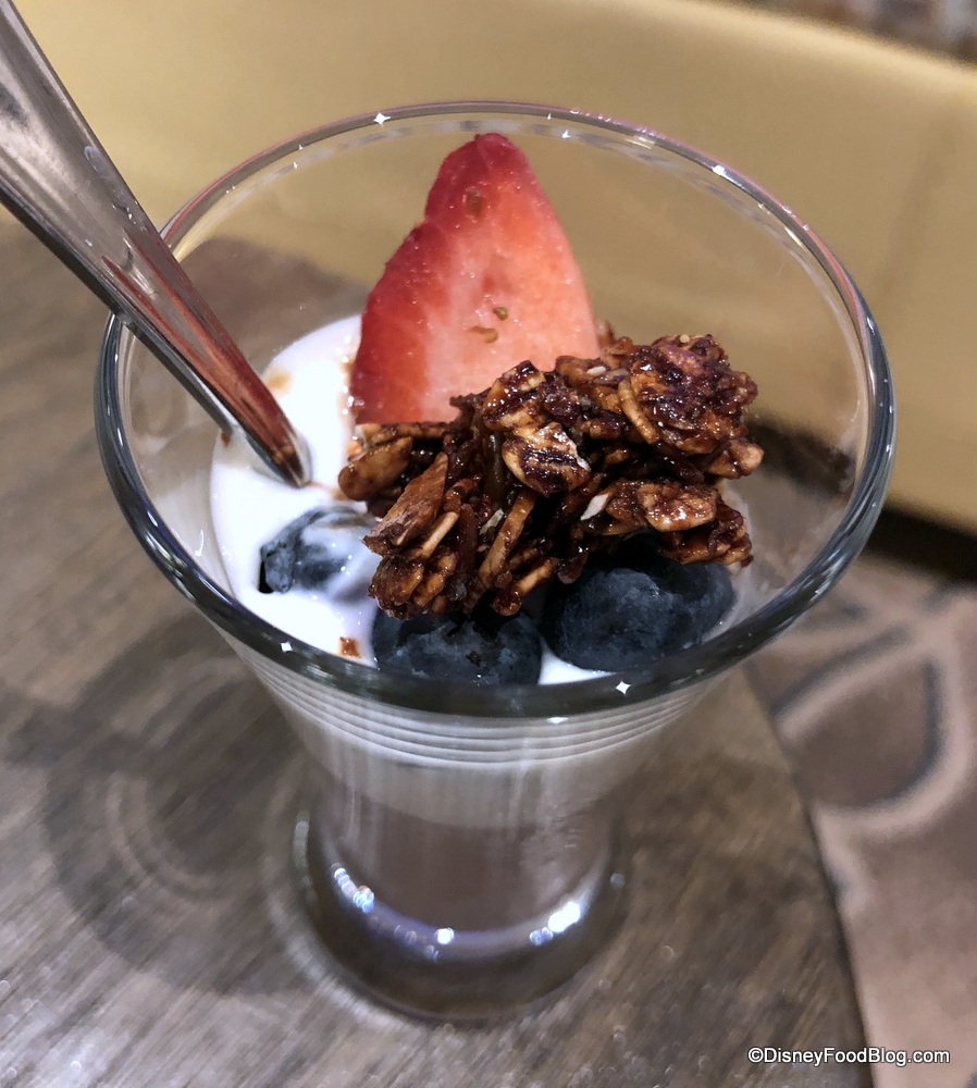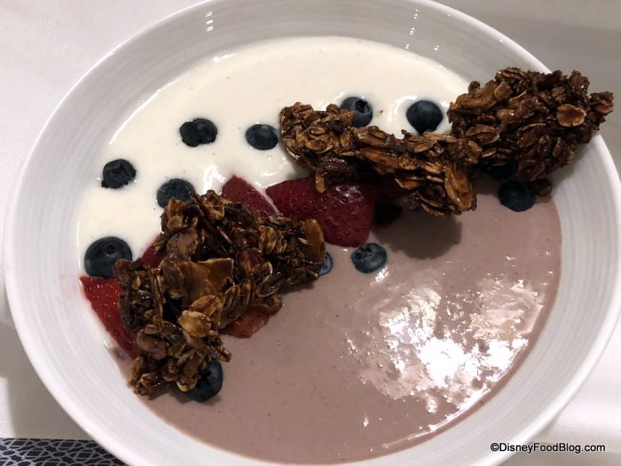 Primo Piatto (the resort’s quick-service location) and Bar Riva (the poolside bar) will offer many of the same menu items, including the ones pictured below. First up, the Acai Yogurt & Berry Parfait, which comes with chocolate granola.