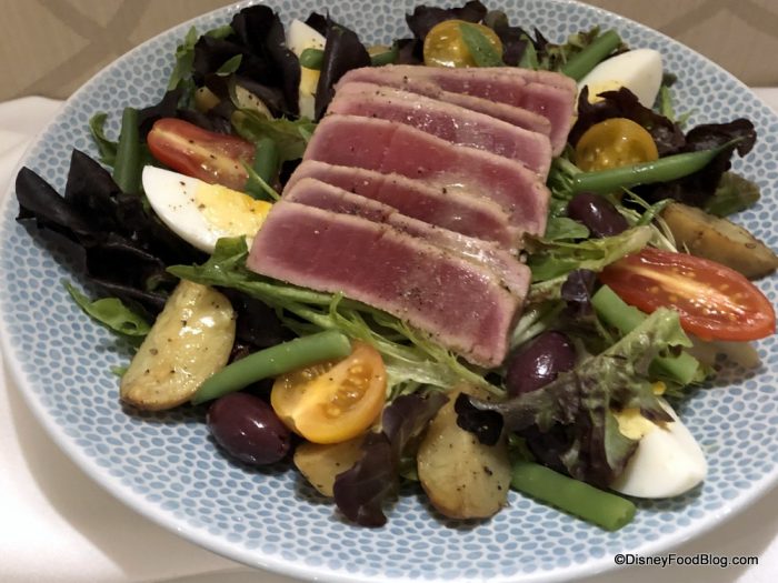 Though we didn’t get to try it, the Tuna Niçoise Salad looks colorful, nutritious, and delicious. It features a Dijon vinaigrette dressing.