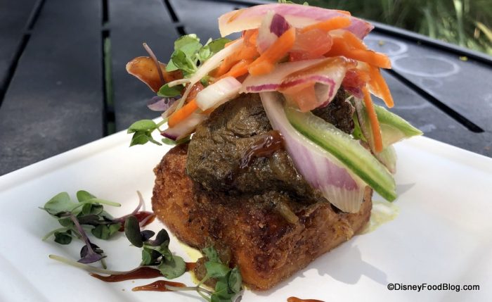We wouldn’t want you to miss out on the Kenyan Coffee Barbecue Beef at the Africa booth. Not only is it our favorite dish at this particular booth, but it’s one of our top picks of the entire Festival! The coffee rub combined with the fresh veggies in the slaw on top made this an A+ for us!
